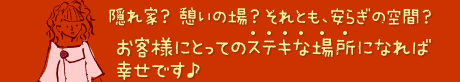 お客様にとってココがステキな場所になれば、私たちスタッフにとっても幸せに繋がります♪
